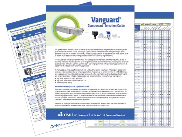 It is critical to choose the right optics and optomechanical components that work best with your Vanguard laser. Vanguard’s high UV and green output power necessitates optics that have a high damage threshold. MKS Newport offers a wide selection of the highest quality optics and optical components covering the entire spectrum UV, VIS, NIR and IR wavelengths to help you with your most challenging applications.